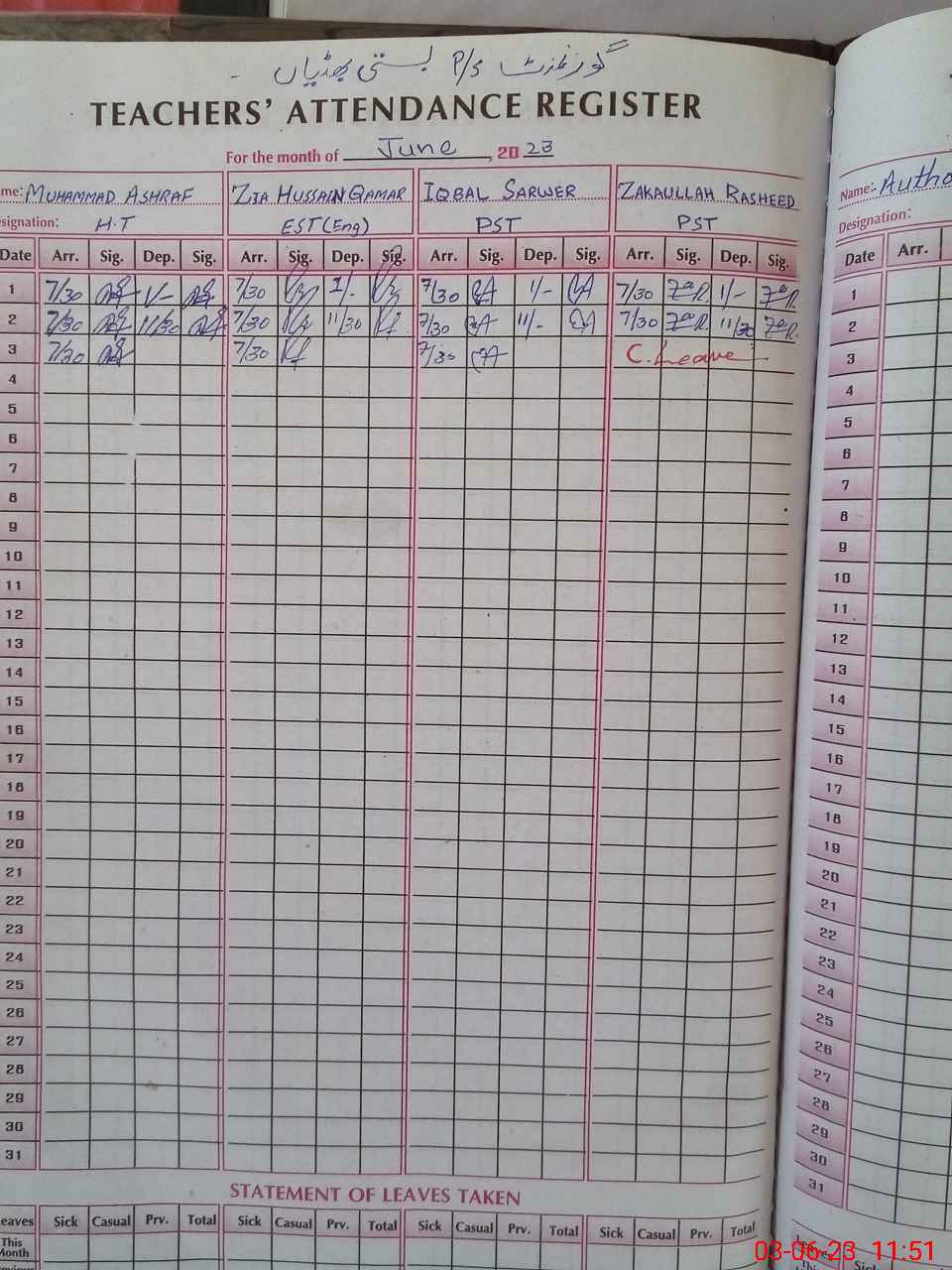 | 31**** | Za**** Ra**** | PST | Regular | 2 | 16 | 0 | 0 | 0 | 0 | 0 | 0 | 2 | Casual |