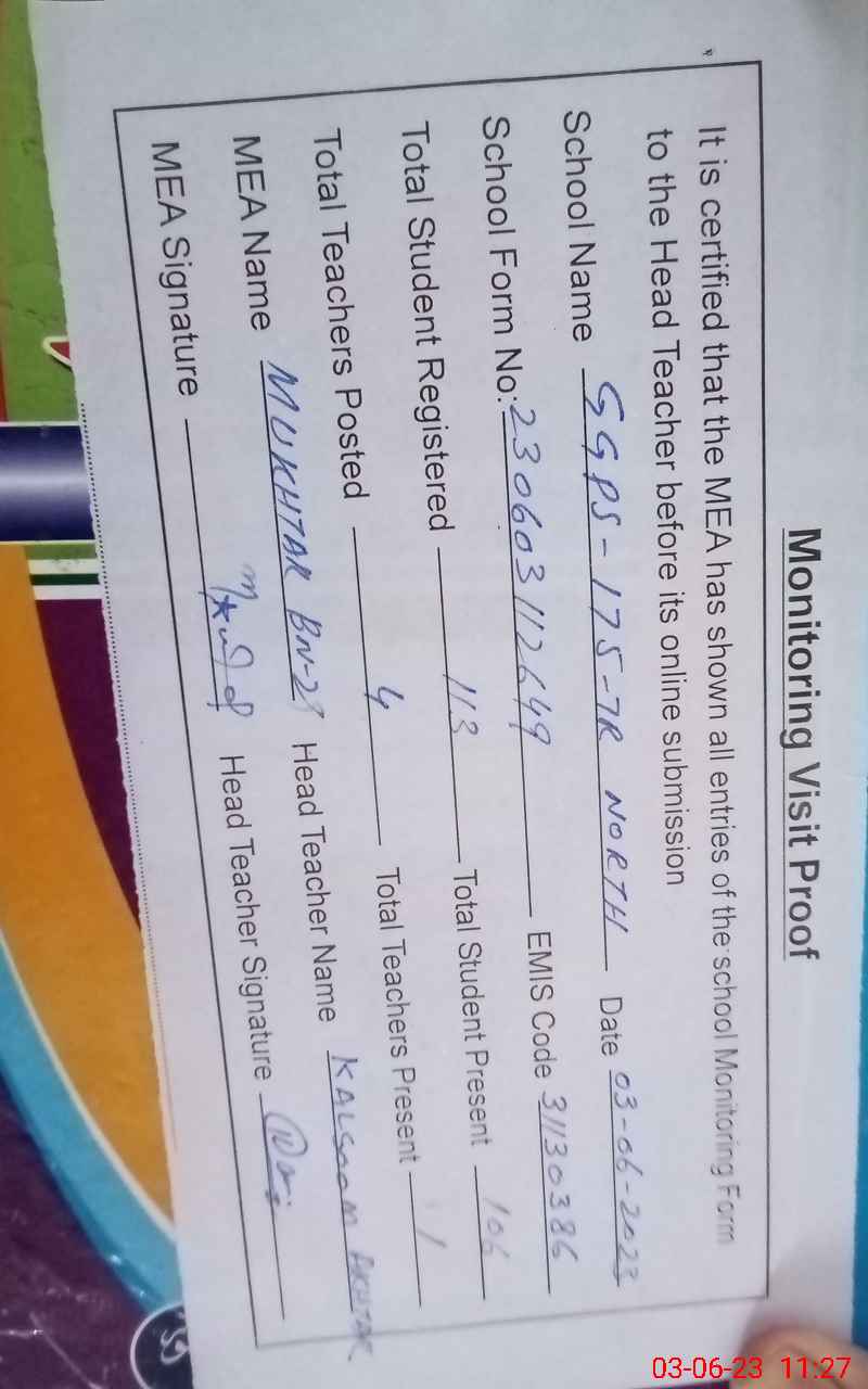 | EMIS Code: 31130386 | Name of School: GGPS CHAK NO 175/7-R | |||