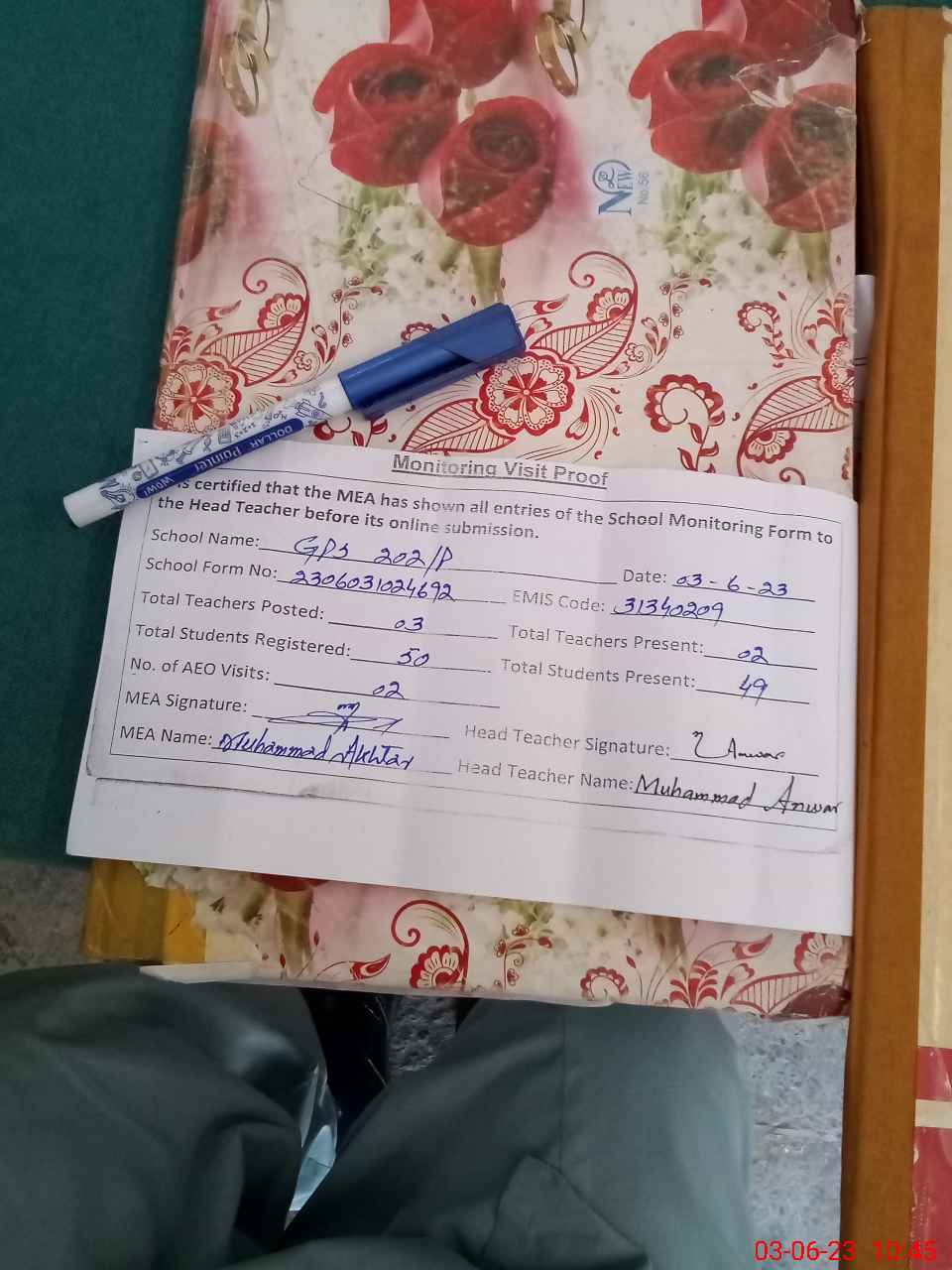 | EMIS Code: 31340209 | Name of School: GPS CHAK NO 202/P | |||