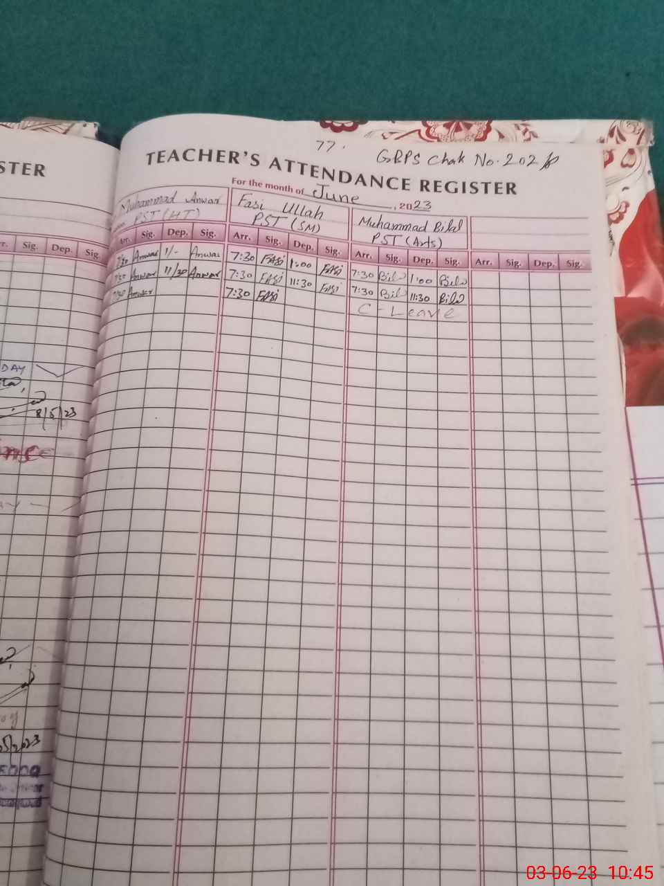 | Name: M.**** Designation: (School Headmaster's/Headmistress's) PST Phone/Cell Number: 03**** |