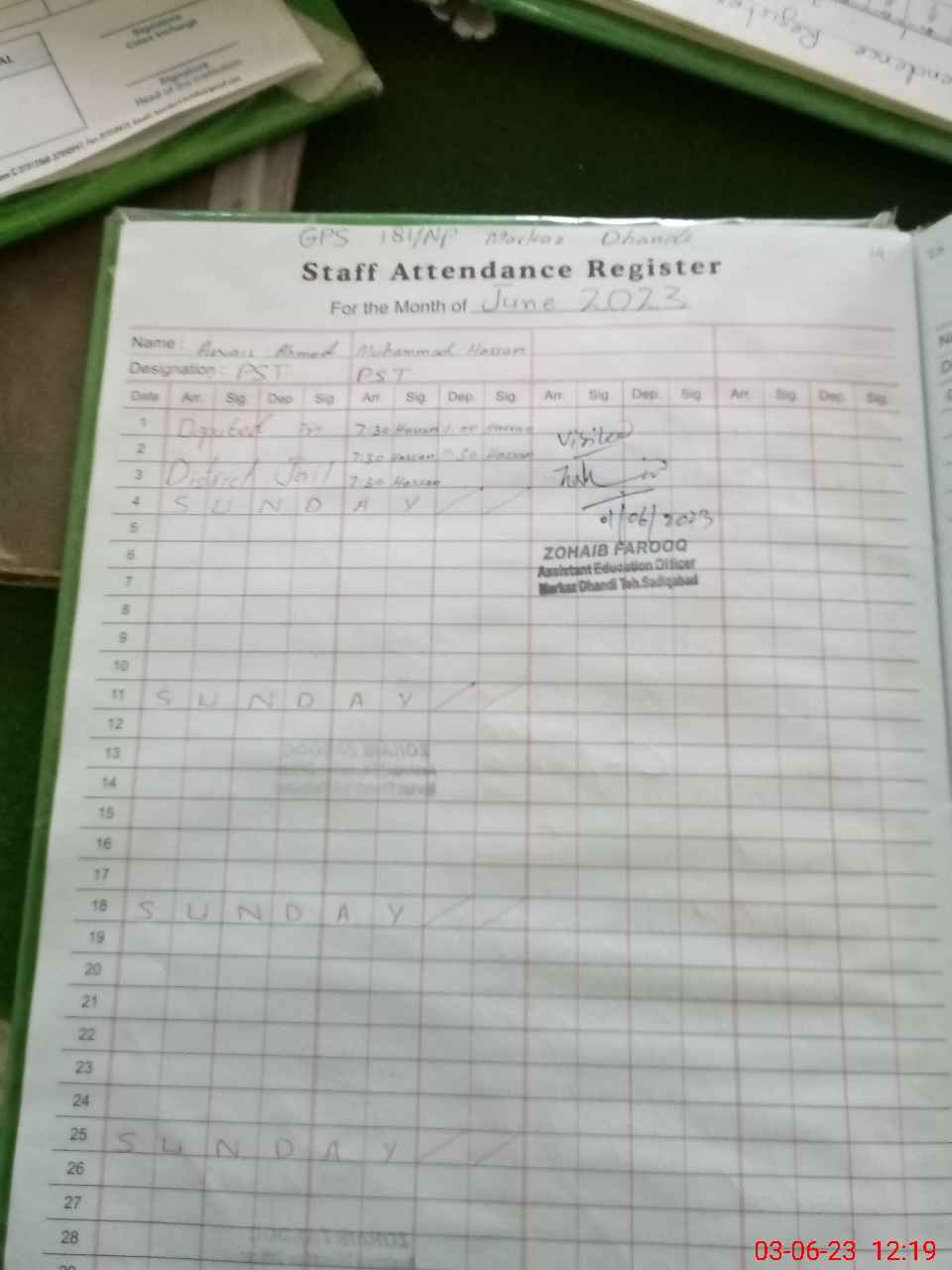 | Name: Ow**** Ah**** Designation: (School Headmaster's/Headmistress's) PST Phone/Cell Number: 03**** |