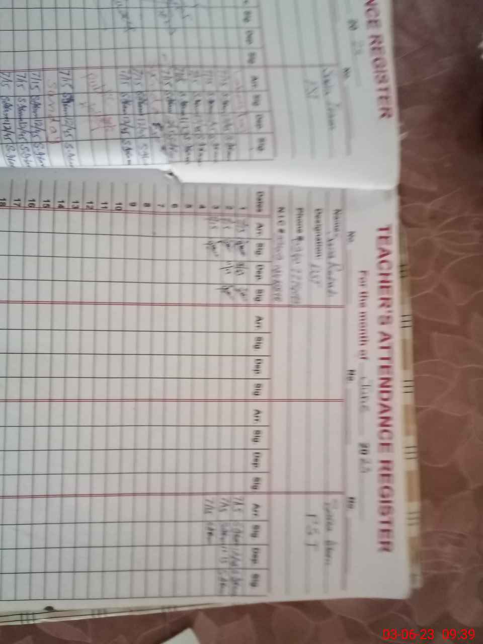 | Name: SA**** Ru**** Designation: (School Headmaster's/Headmistress's) PST Phone/Cell Number: 03**** |