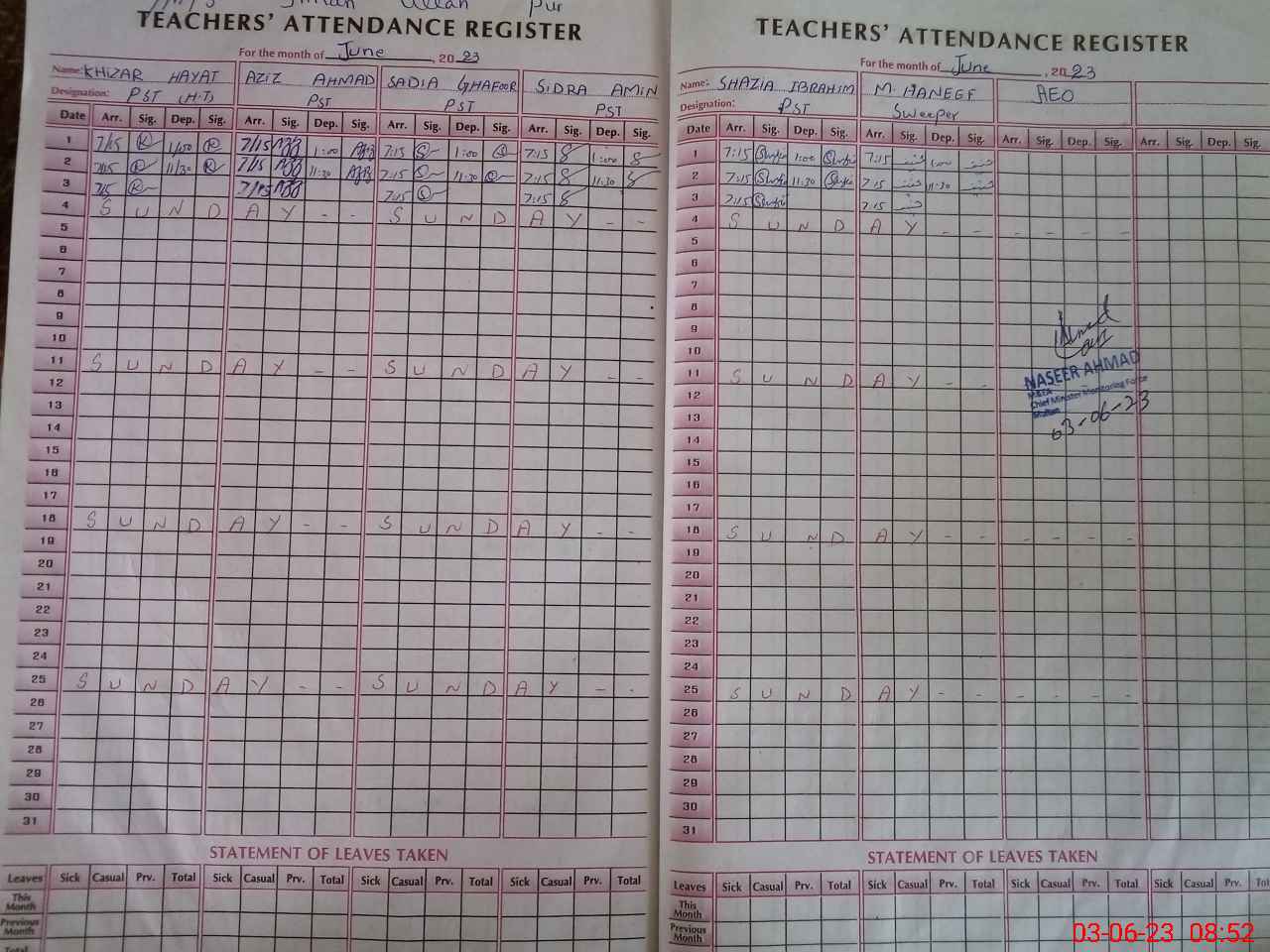 | Name: KH**** HA**** Designation: (School Headmaster's/Headmistress's) PST Phone/Cell Number: 03**** |