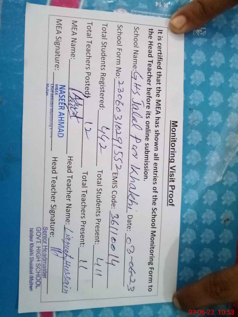 | EMIS Code: 36120014 | Name of School: GHS JALAL PUR KHAKI SHUJABAD | |||