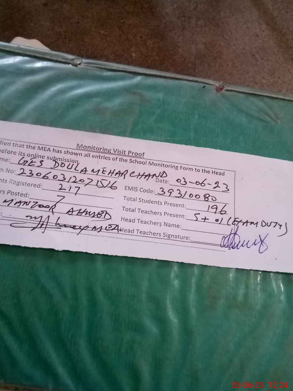 | EMIS Code: 39310080 | Name of School: GES DOULA MEHAR CHAND | |||