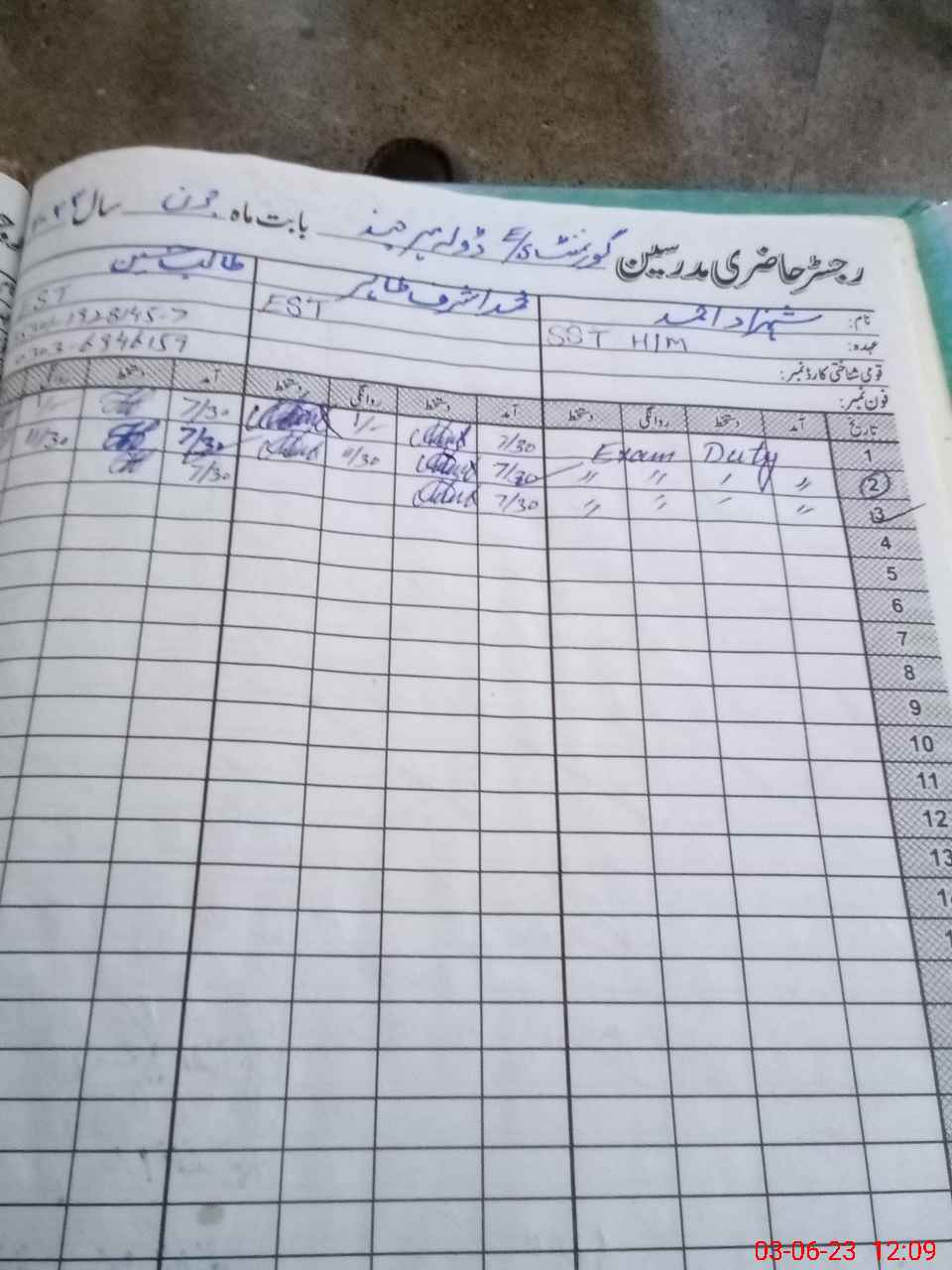 | 35**** | Sh**** Ah**** | SST | Regular | 0 | 0 | 0 | 0 | 0 | 0 | 0 | 0 | 0 | Exam Duty |