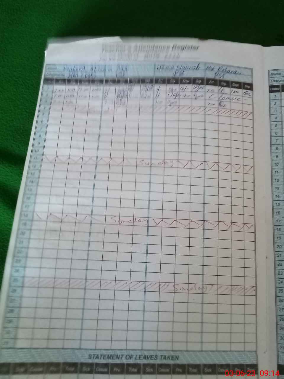 | CNIC | Full Name | Designation | R/C | Absence During Last Calender Month |