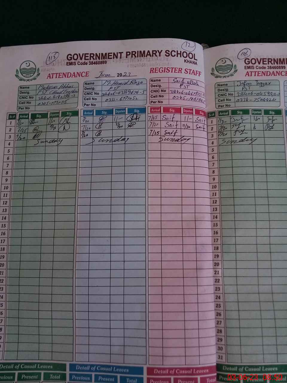 | CNIC | Full Name | Designation | R/C | Absence During Last Calender Month |