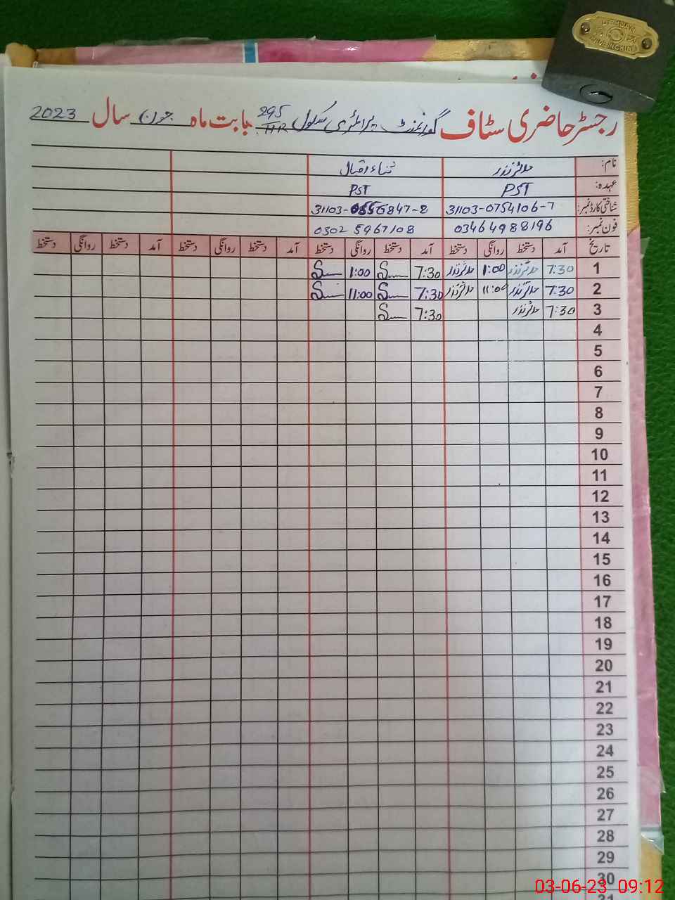 | Name: Mu**** Na**** Designation: (School Headmaster's/Headmistress's) PTC/JV Phone/Cell Number: 03**** |