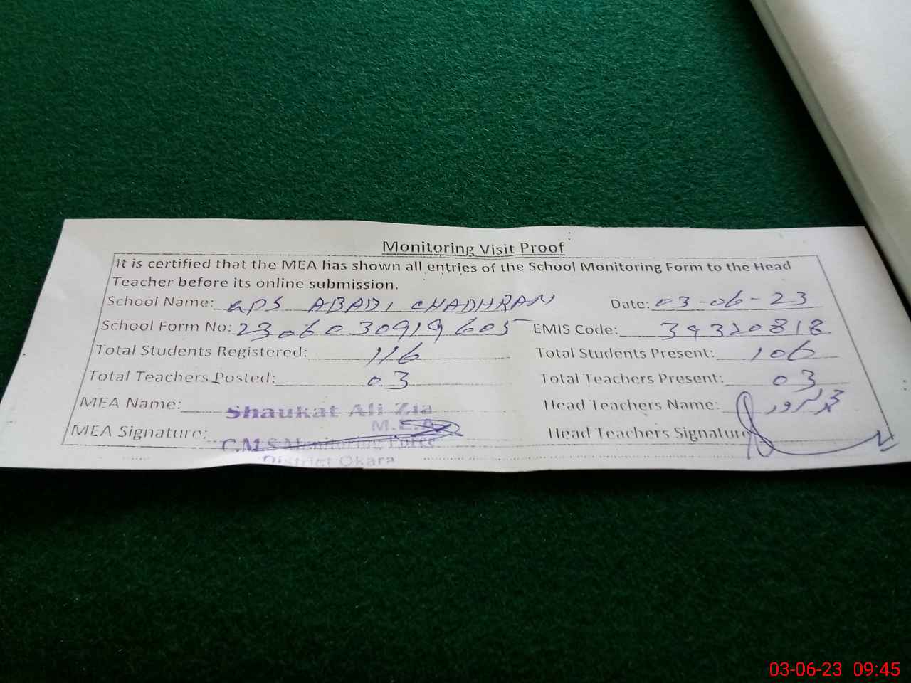| EMIS Code: 39320818 | Name of School: GPS ABADI CHADHRAN | |||