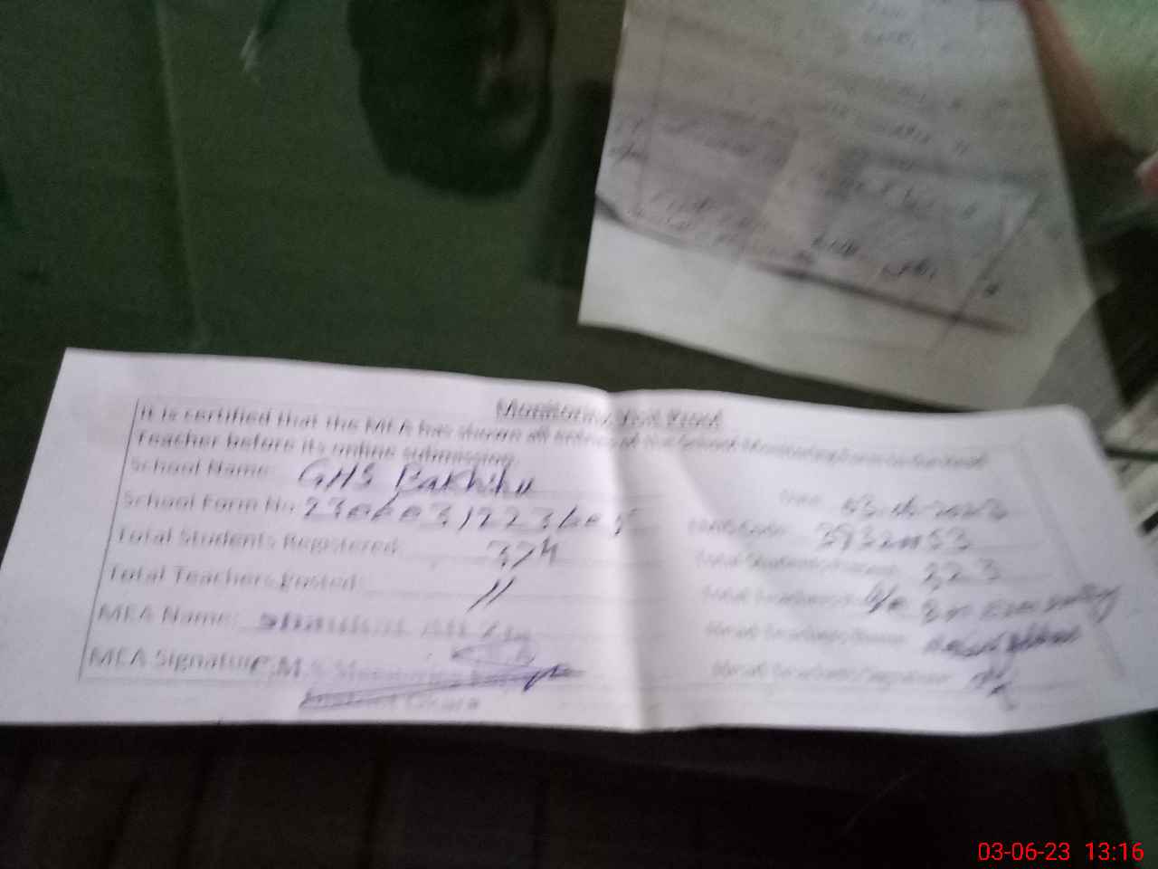 | Certified that this School was Inspected by the Undersigned MEA/DMO Today and the Information Stated Above is as Per Record. | |||||