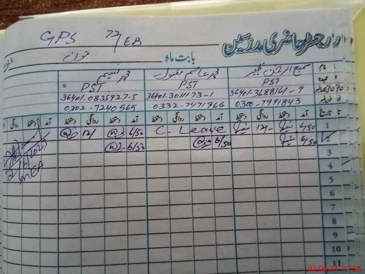 | Name: Mu**** As**** Ma**** Designation: (School Headmaster's/Headmistress's) PST Phone/Cell Number: 03**** |