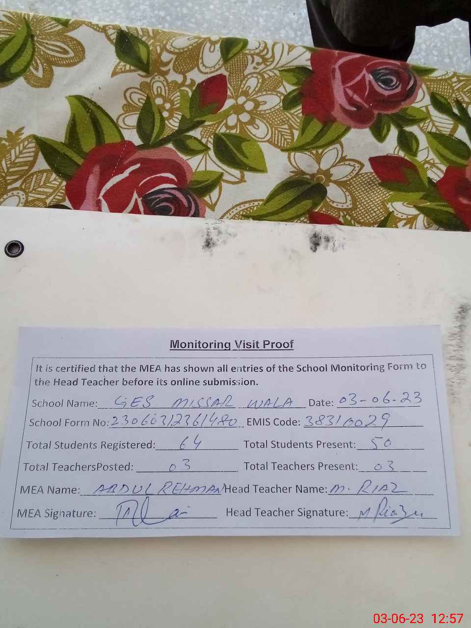 | EMIS Code: 38310029 | Name of School: GES MISSAR WALA | |||