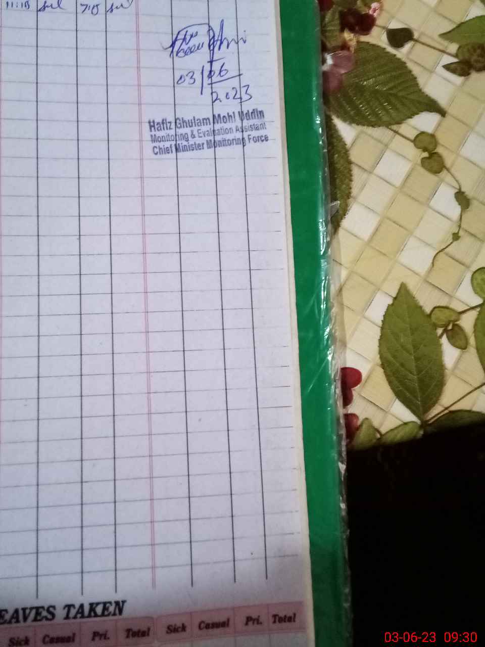 | Monitoring Date: 03-06-2023 | Start Time: 03-06-2023 09:13 AM | End Time: 03-06-2023 09:33 AM | Name of MEA: HA**** GH**** MO**** UDDI**** | |