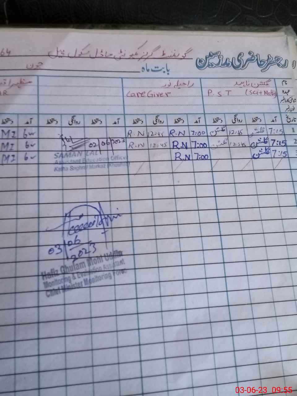 | Name: MU**** YA**** Designation: (School Headmaster's/Headmistress's) S.S.T.(GEN) Phone/Cell Number: 03**** |