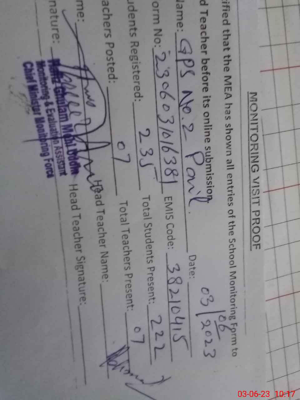 | EMIS Code: 38210415 | Name of School: GPS NO 2 PAIL | |||