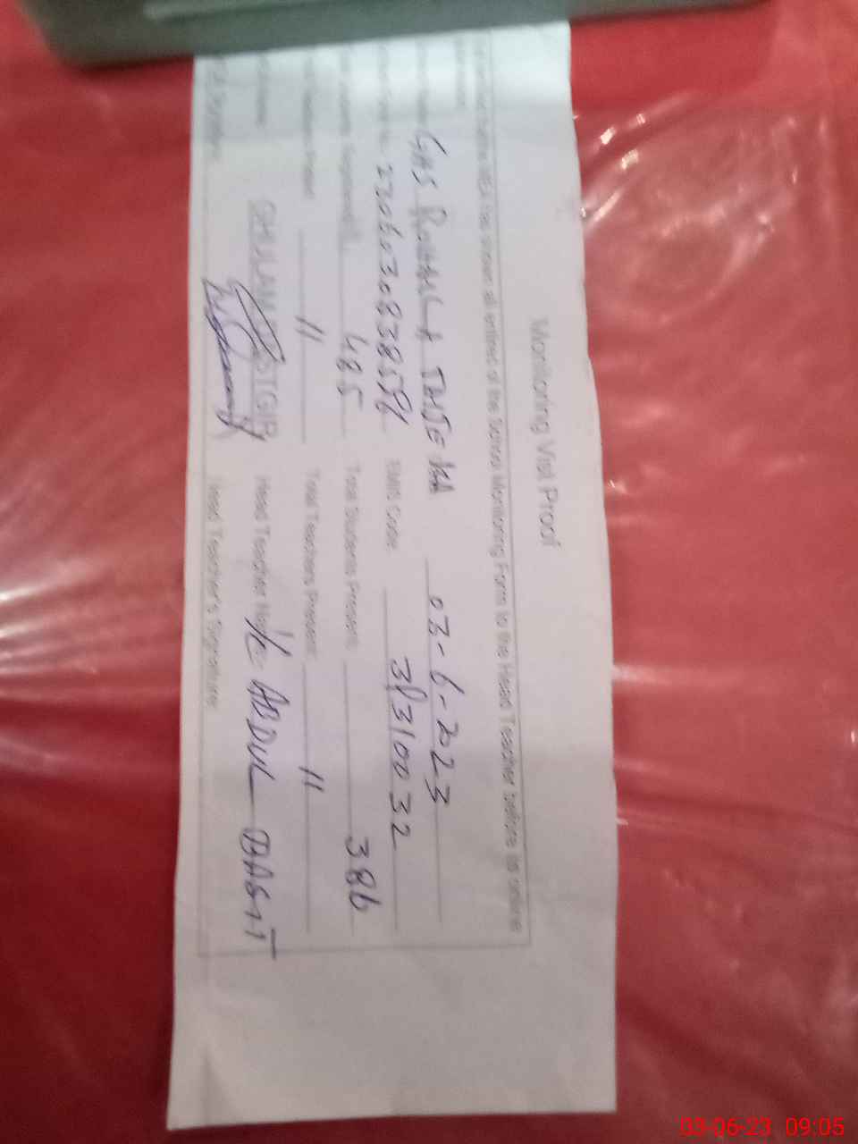 | Attendance Register | Head Teacher | MEA with School | Visit Proof |