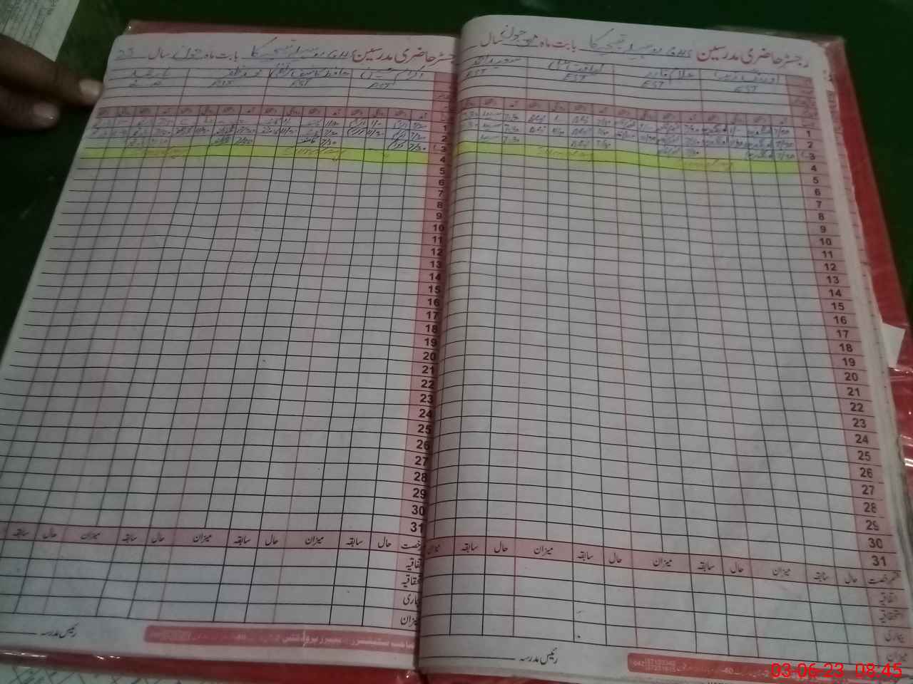 | CNIC | Full Name | Designation | R/C | Absence During Last Calender Month |