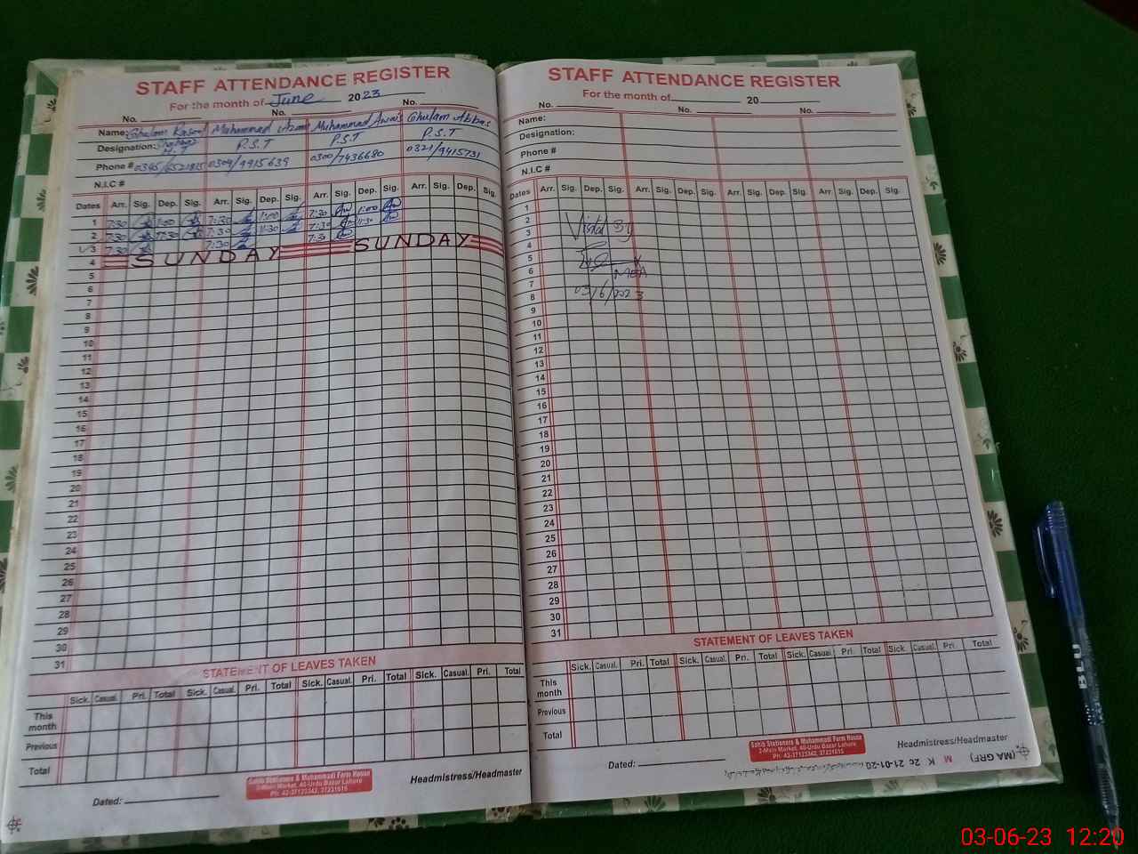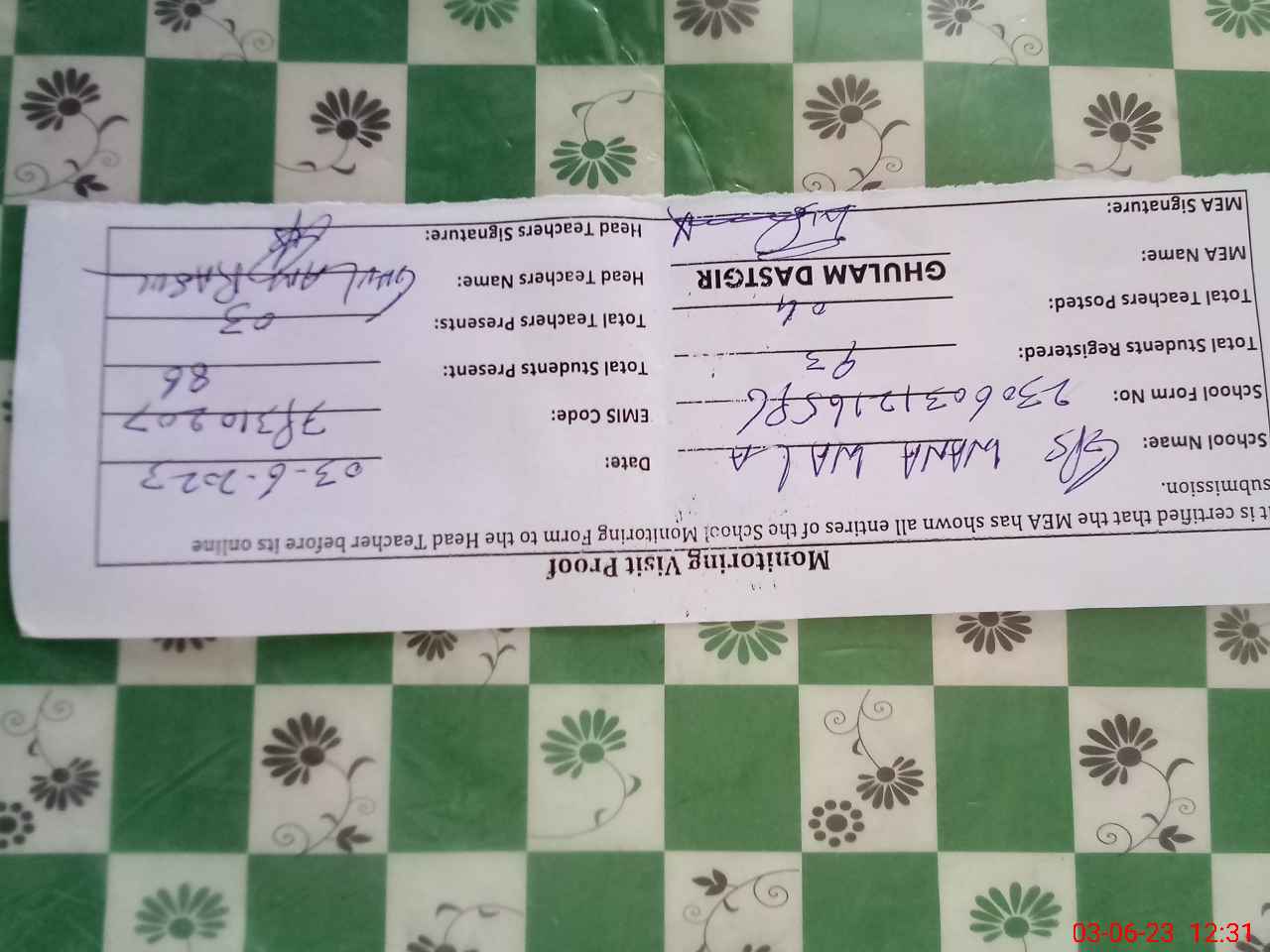 | Name: GH**** RA**** SH**** Designation: (School Headmaster's/Headmistress's) PST Phone/Cell Number: 03**** |