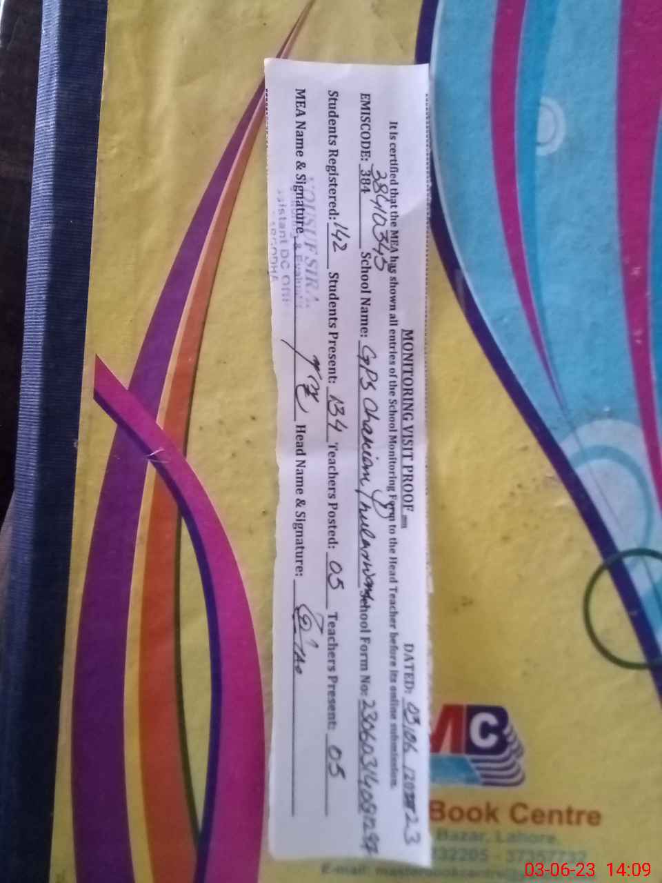 | EMIS Code: 38410345 | Name of School: GPS CHAKIAN PHULARWAN | |||