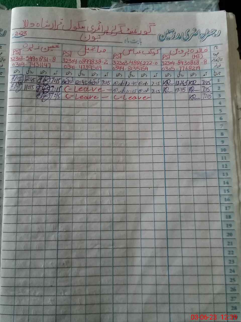 | 32**** | Sa**** Ja**** | PST | Regular | 0 | 0 | 0 | 0 | 0 | 0 | 0 | 0 | 0 | Casual |