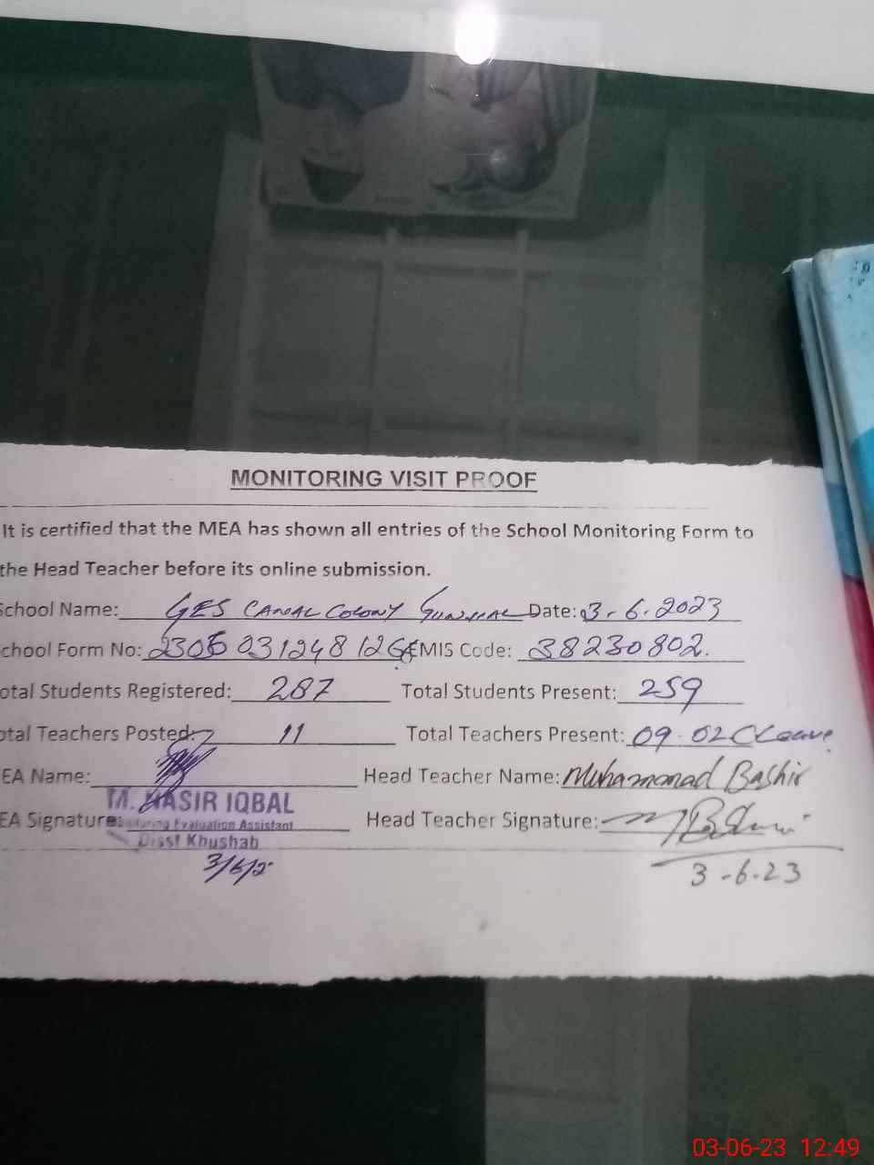 | Attendance Register | Head Teacher | MEA with School | Visit Proof |