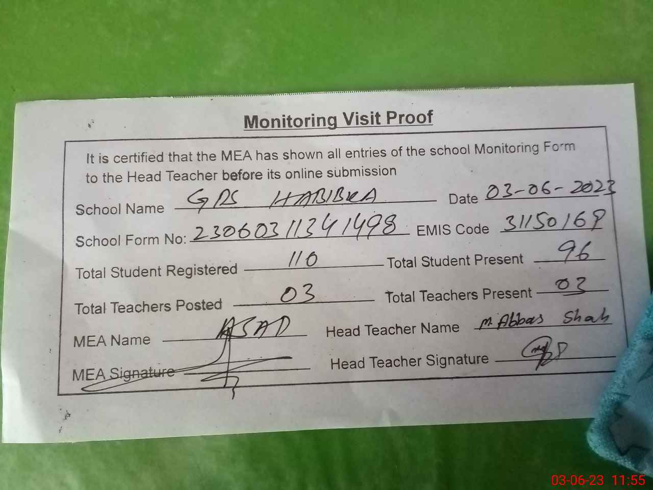 | EMIS Code: 31150169 | Name of School: GPS HABIB KA | |||