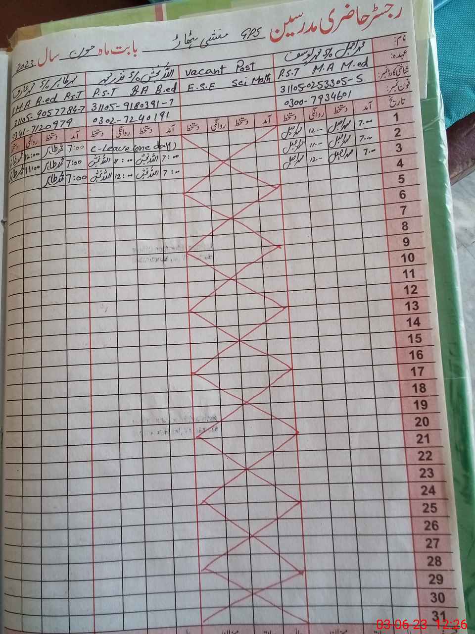 | Name: Mu**** Aj**** Designation: (School Headmaster's/Headmistress's) PST Phone/Cell Number: 03**** |