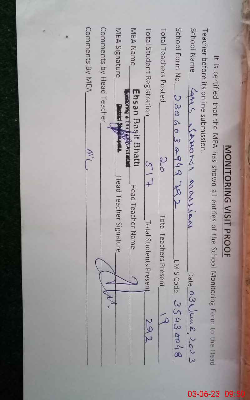 | EMIS Code: 35430048 | Name of School: GHS SAHOKI MALLIAN | |||