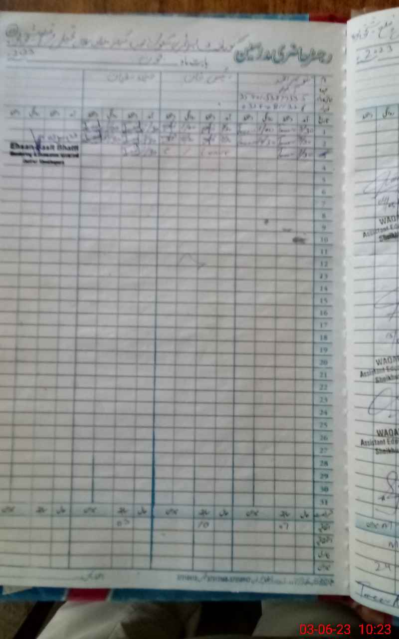 | CNIC | Full Name | Designation | R/C | Absence During Last Calender Month |