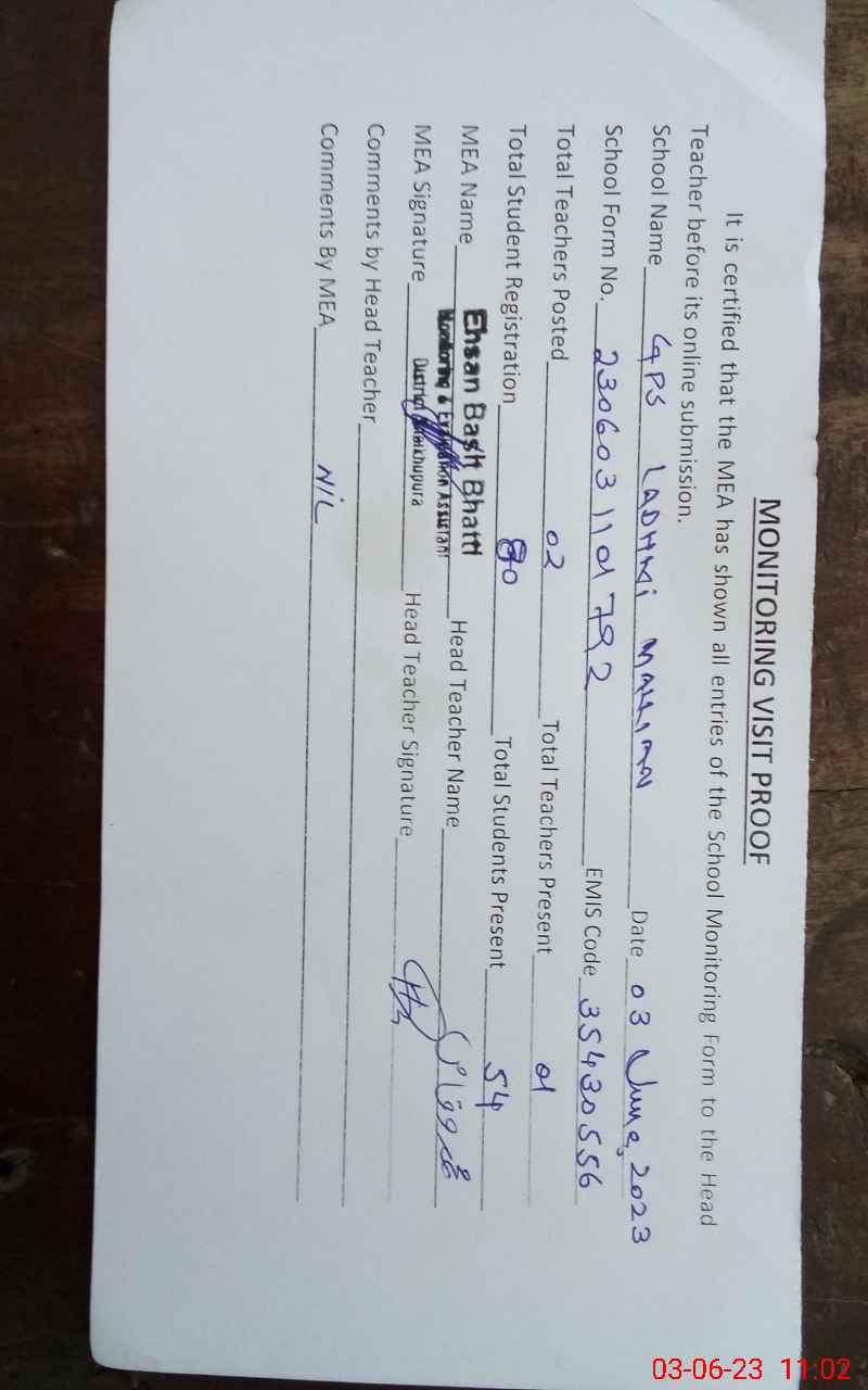 | EMIS Code: 35430556 | Name of School: GPS LADHKI MALLIAN | |||