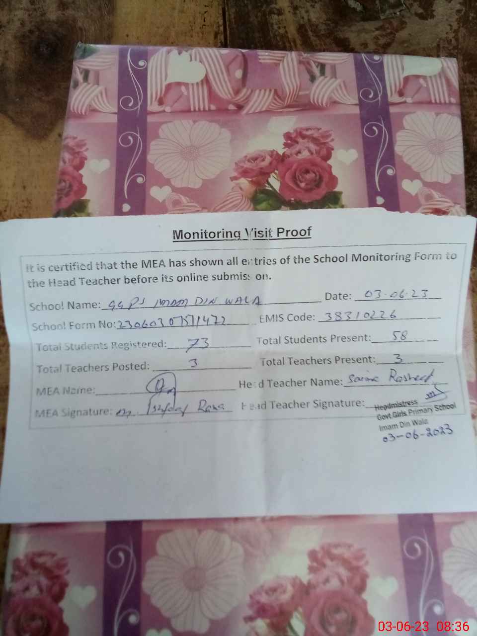 | EMIS Code: 38310226 | Name of School: GGPS IMAM DIN WALA | |||