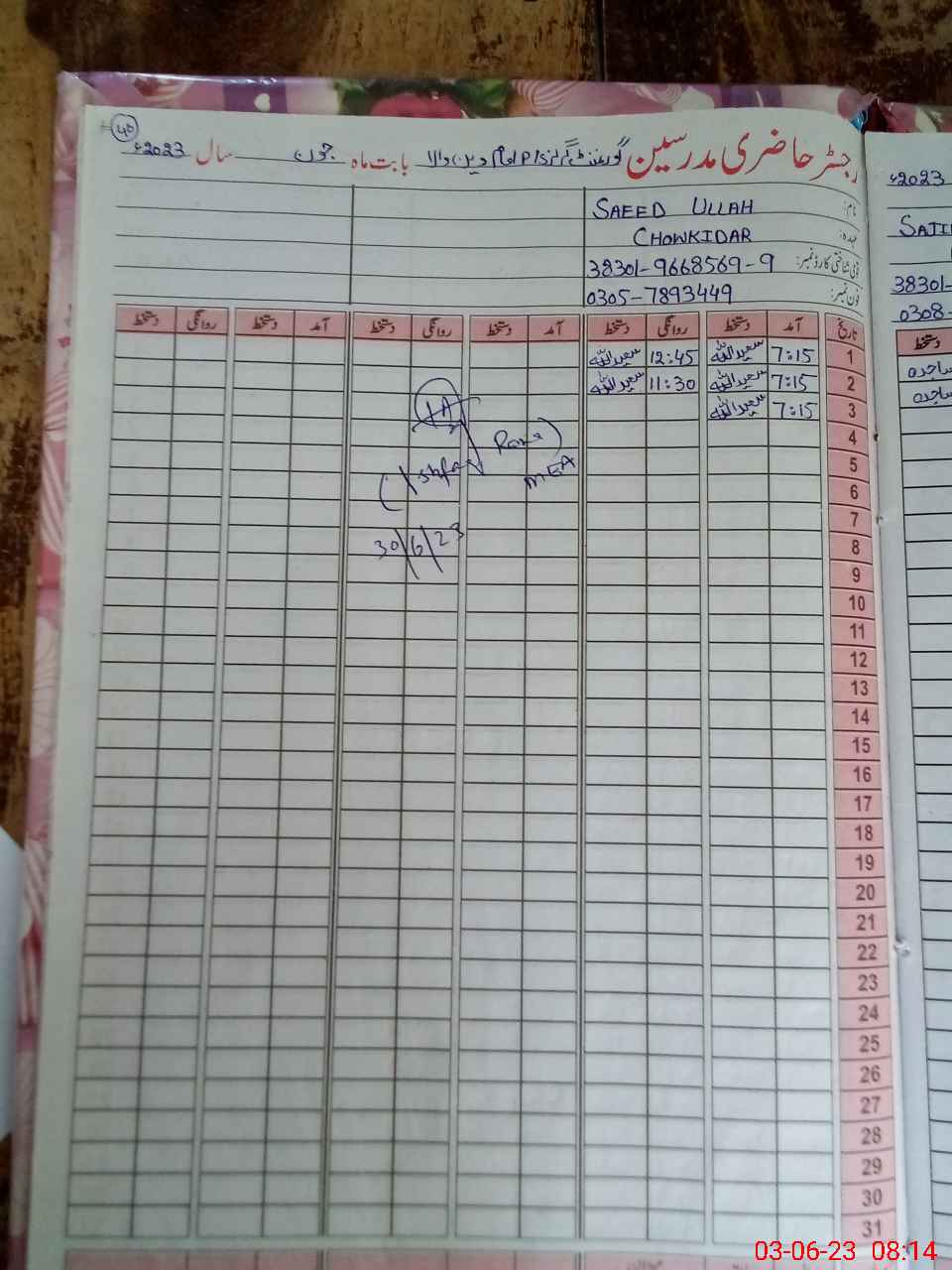 | Name: Sa**** Ra**** Designation: (School Headmaster's/Headmistress's) Ese Phone/Cell Number: 03**** |