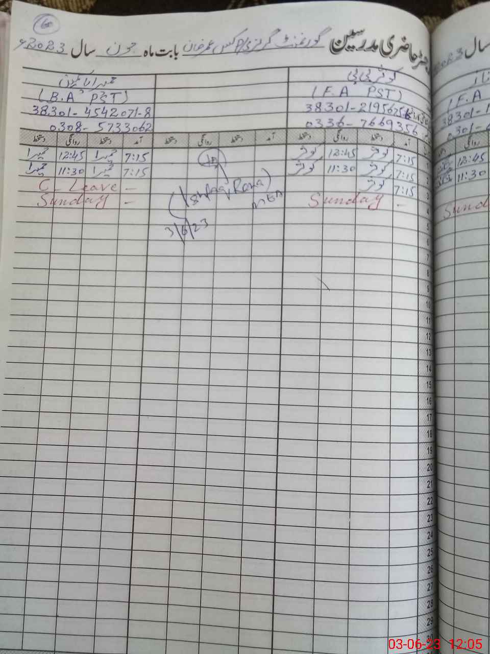 | Name: Za**** BiBi Designation: (School Headmaster's/Headmistress's) PST Phone/Cell Number: 03**** |