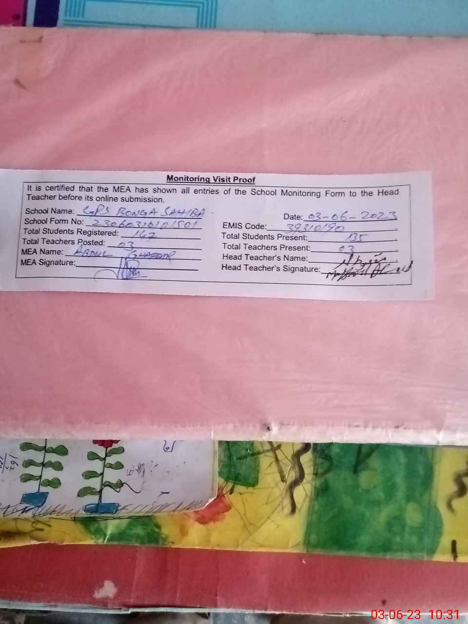 | EMIS Code: 39310190 | Name of School: GPS BUNGA SAHIBA | |||