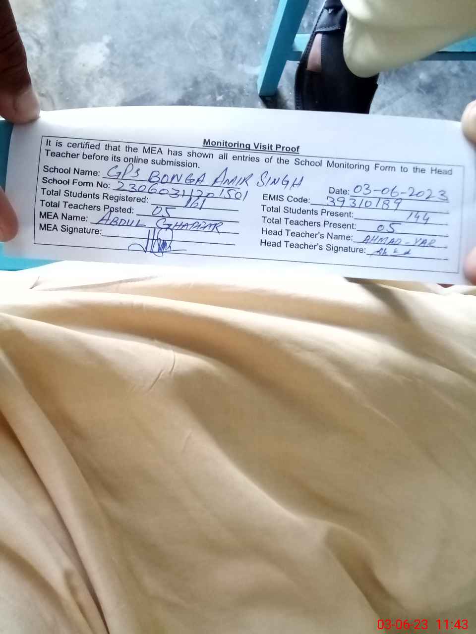 | EMIS Code: 39310189 | Name of School: GPS AMIR SINGH | |||