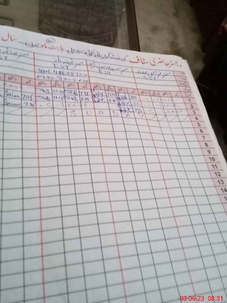 | Name: Sa**** Na**** Designation: (School Headmaster's/Headmistress's) SST. Art Phone/Cell Number: 03**** |