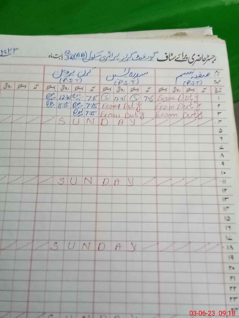 | 31**** | Sa**** Ta**** | PST | Regular | 1 | 7 | 0 | 0 | 0 | 0 | 0 | 0 | 1 | Exam Duty |