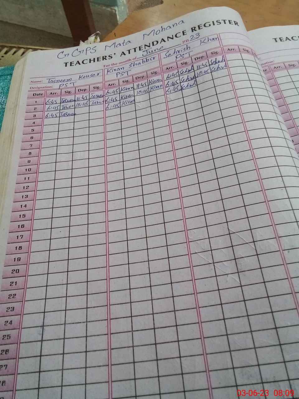 | Name: TA**** KO**** Designation: (School Headmaster's/Headmistress's) PST Phone/Cell Number: 03**** |