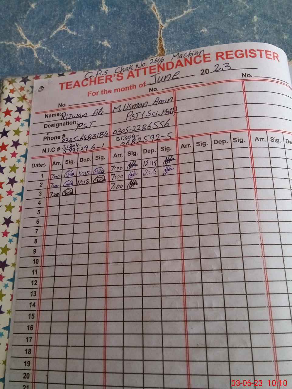 | Name: Ri**** Al**** Designation: (School Headmaster's/Headmistress's) PST Phone/Cell Number: 03**** |