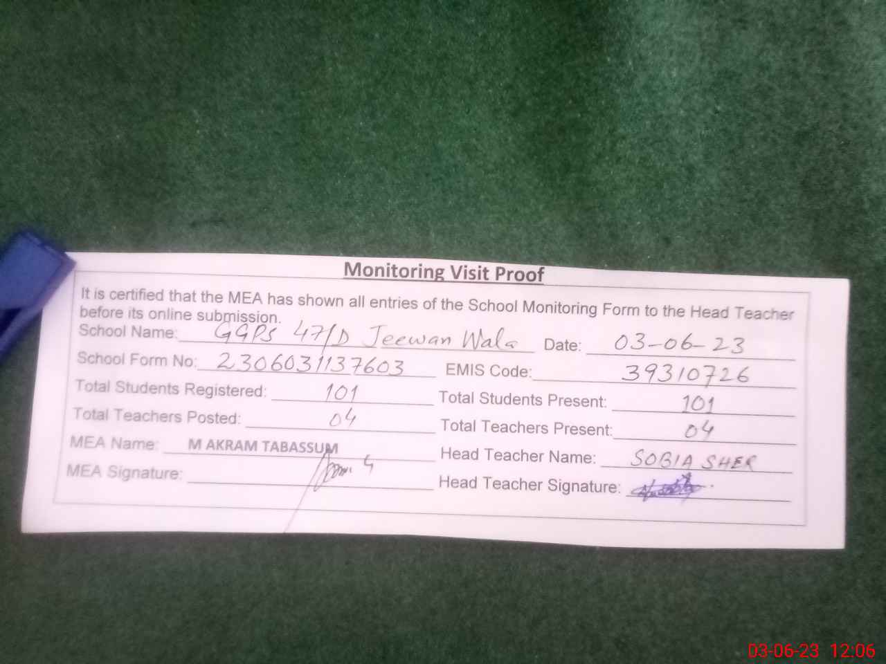 | EMIS Code: 39310726 | Name of School: GGPS 47 D JEEWAN WALA | |||