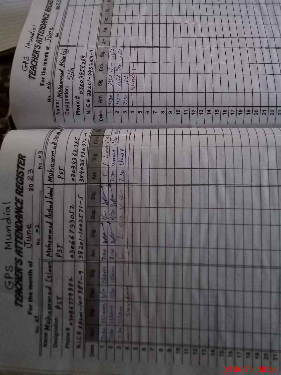 | Name: MU**** IS**** Designation: (School Headmaster's/Headmistress's) PST Phone/Cell Number: 03**** |
