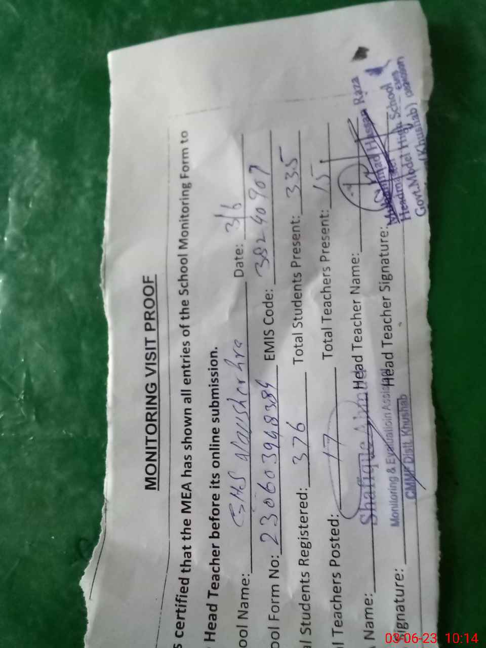 | Name: Mu**** As**** Ra**** Designation: (School Headmaster's/Headmistress's) H .M Phone/Cell Number: 03**** |