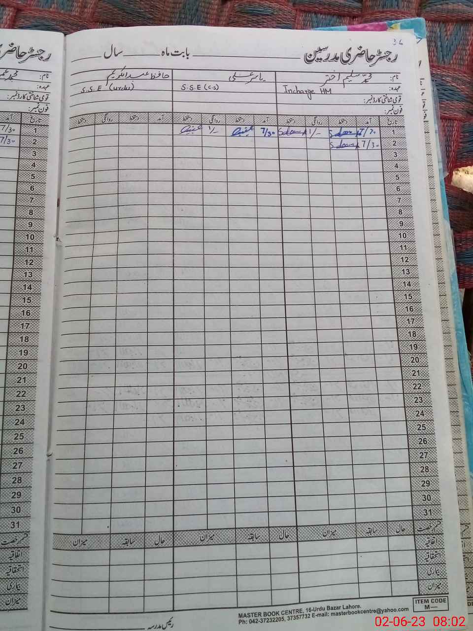 | Remarks (Use Separate Page if Required): PST Atta up mustafa is present in the school but no intry in the teachers colum | |||||