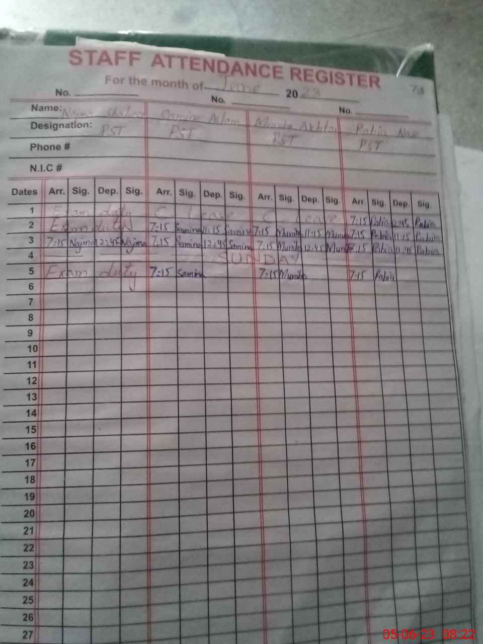 | 38**** | Na**** Sh**** | PST | Regular | 0 | 13 | 0 | 0 | 0 | 0 | 0 | 0 | 0 | Exam Duty |
