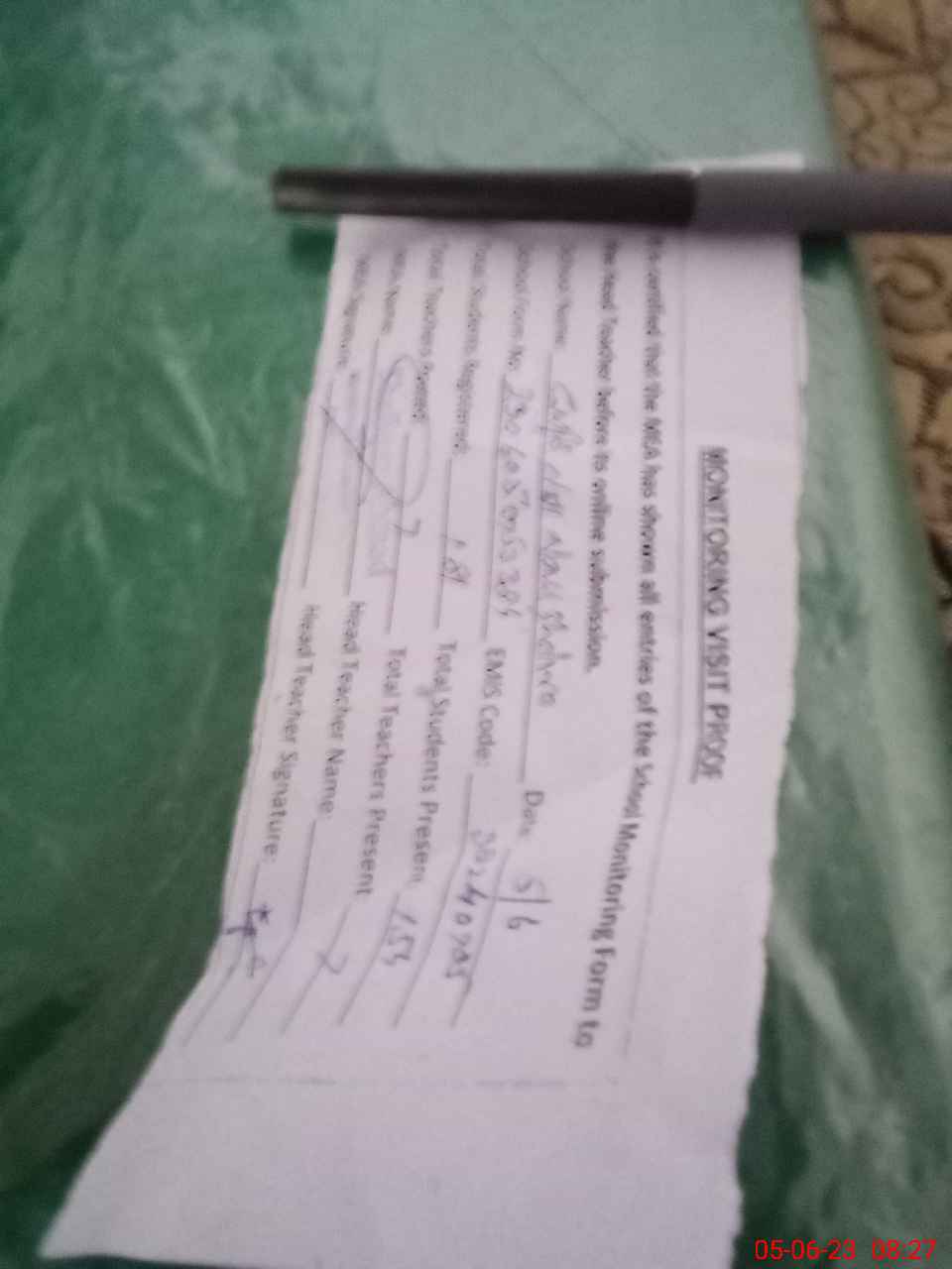 | Attendance Register | Head Teacher | MEA with School | Visit Proof |