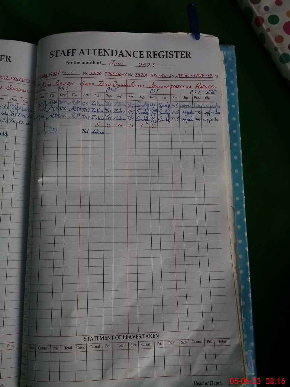 | Leave | Duty | Absent | Maternity | Medical | Ex- Pak |