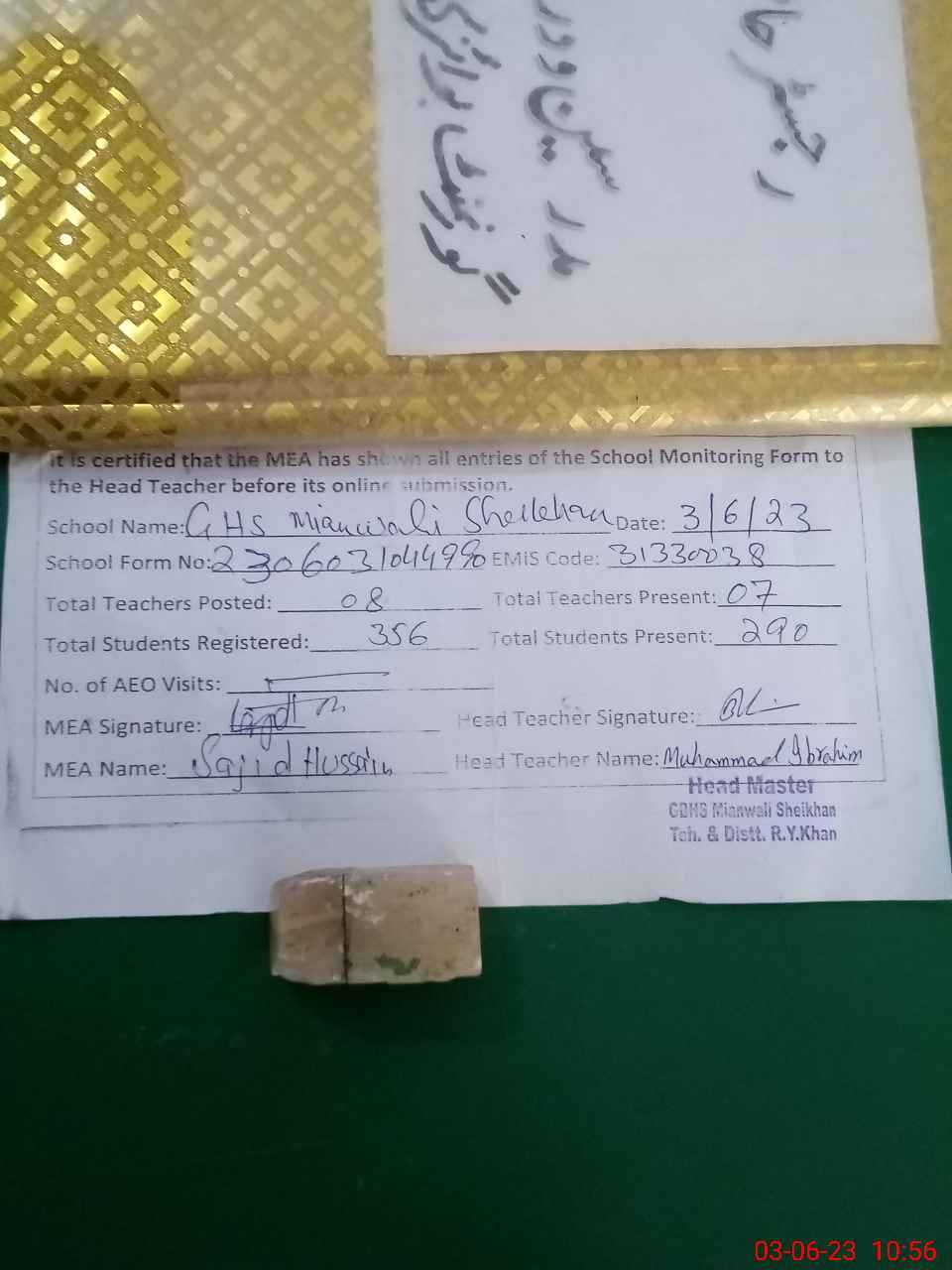 | EMIS Code: 31330038 | Name of School: GHS MIANWALI SHEIKHAN | |||