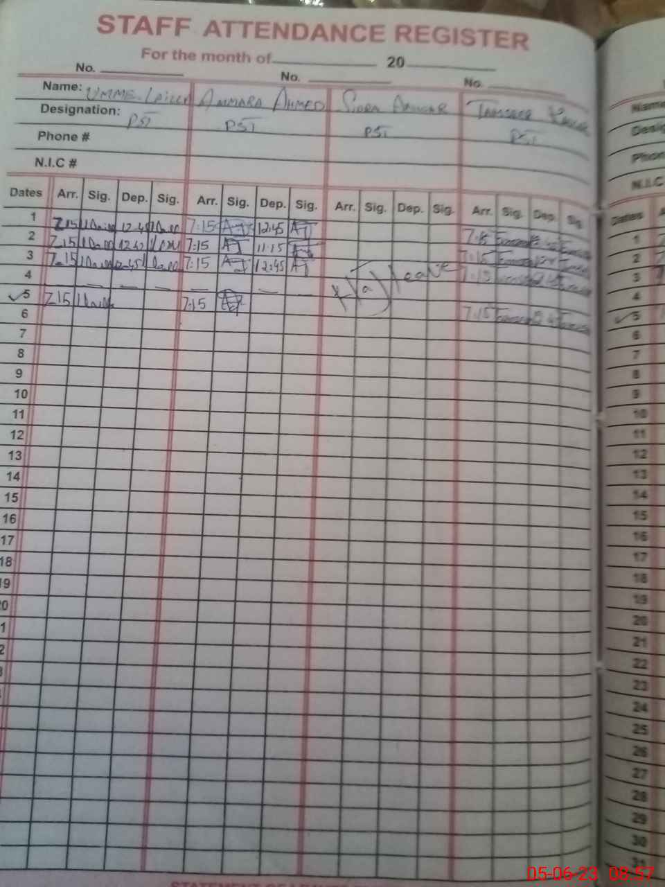 | 38**** | Sa**** Za**** | Regular | 1 | 13 | 0 | 0 | 0 | 0 | 0 | 0 | 1 | Exam Duty | |
