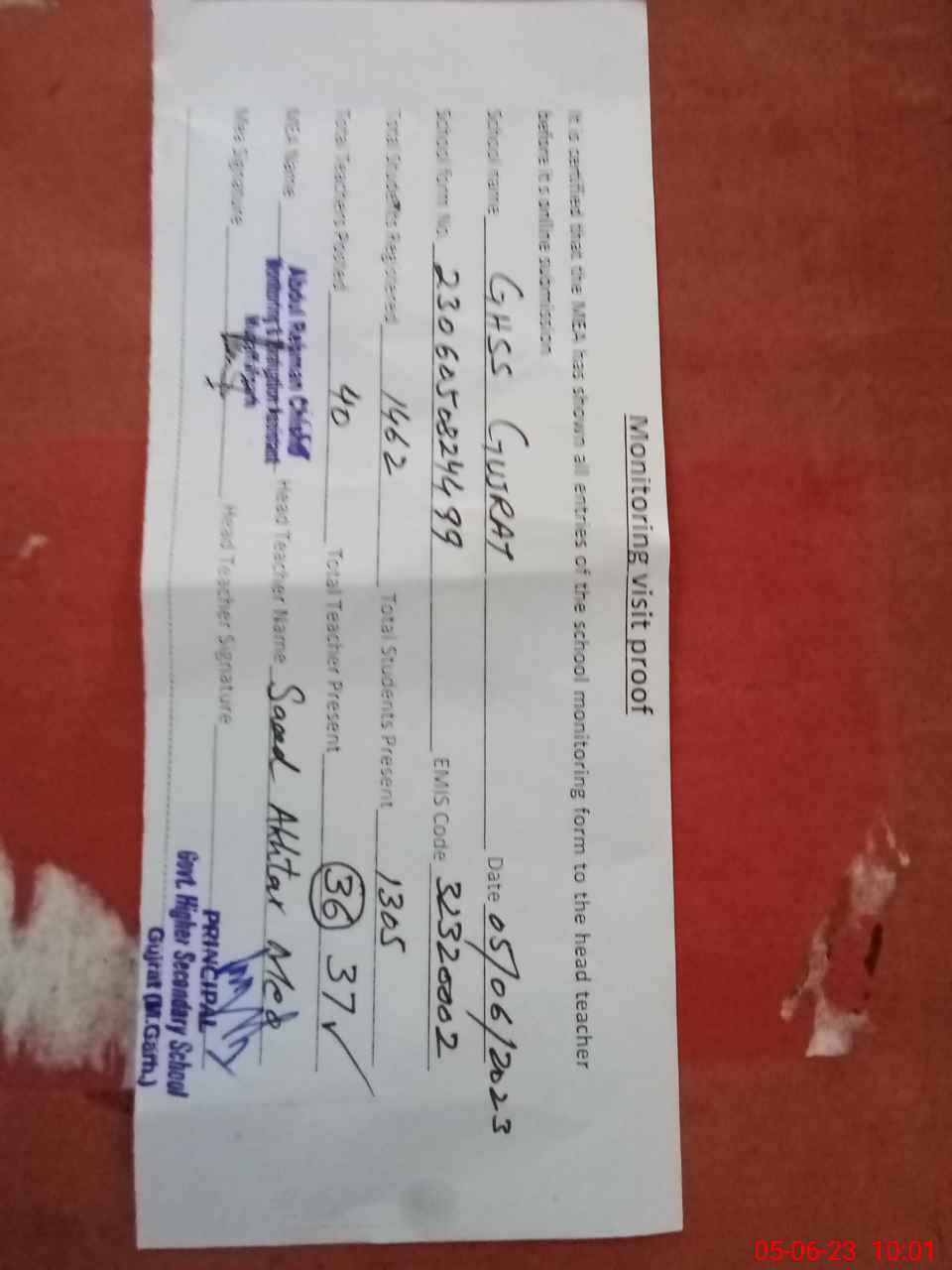 | EMIS Code: 32320002 | Name of School: GHSS GUJRAT | |||